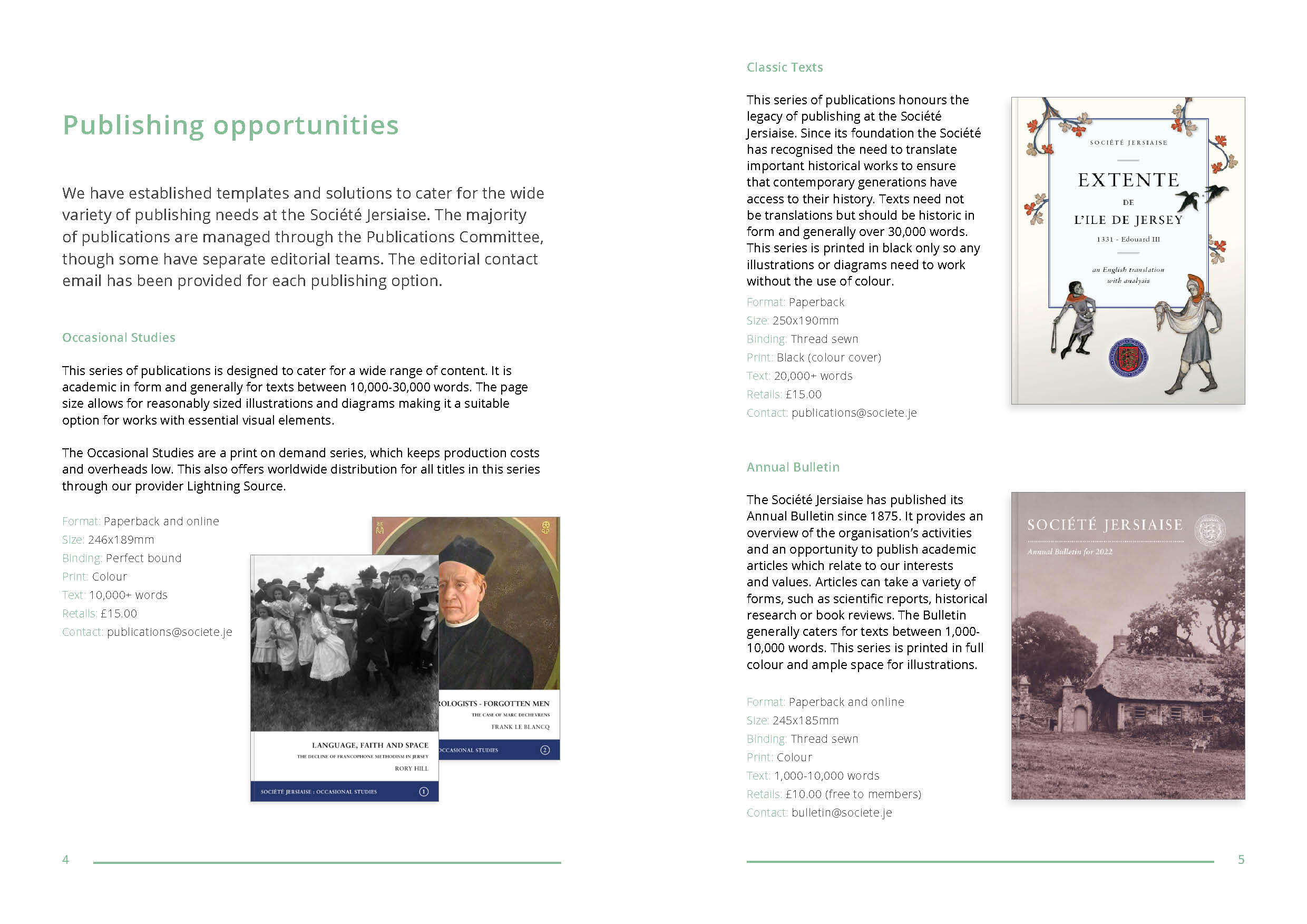 Nous avons travaillé avec la Société Jersiaise pour développer leur identité éditoriale.